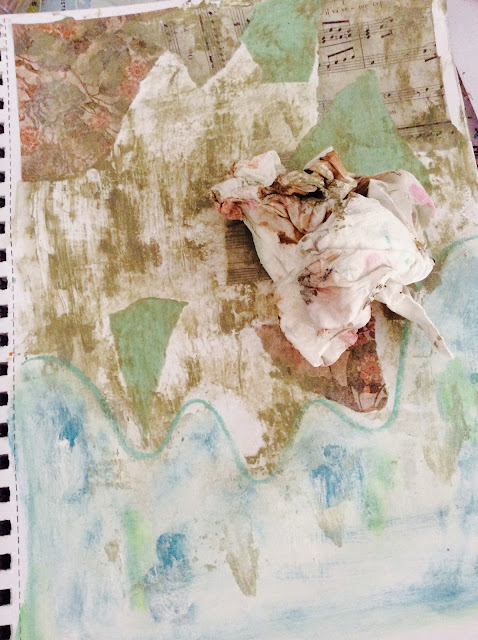 Step 3- cut some different papers and add them to your background with gel medium or other glue you have.